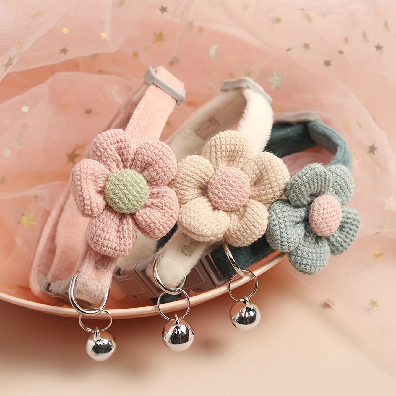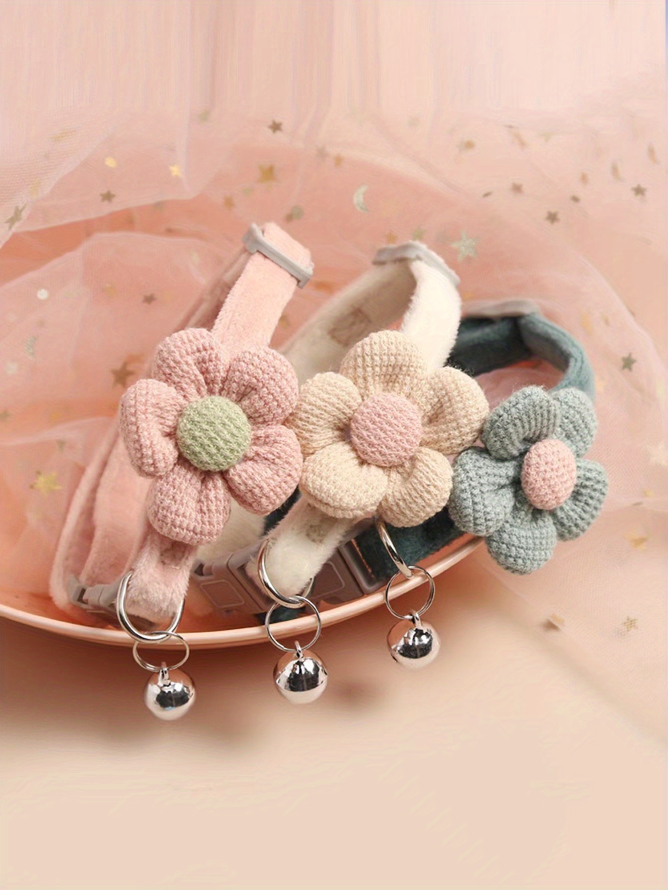1pc Cute Dog Necklace with Flower Decor and Bell Strap - Pet Collars and Leads for Stylish Pups